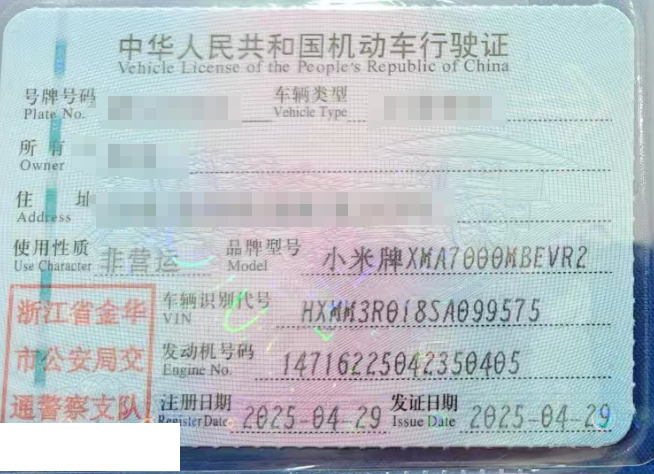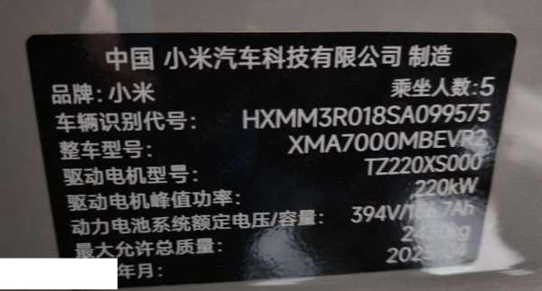 初次登记日期 2025-04-29 车辆名称 小米汽车