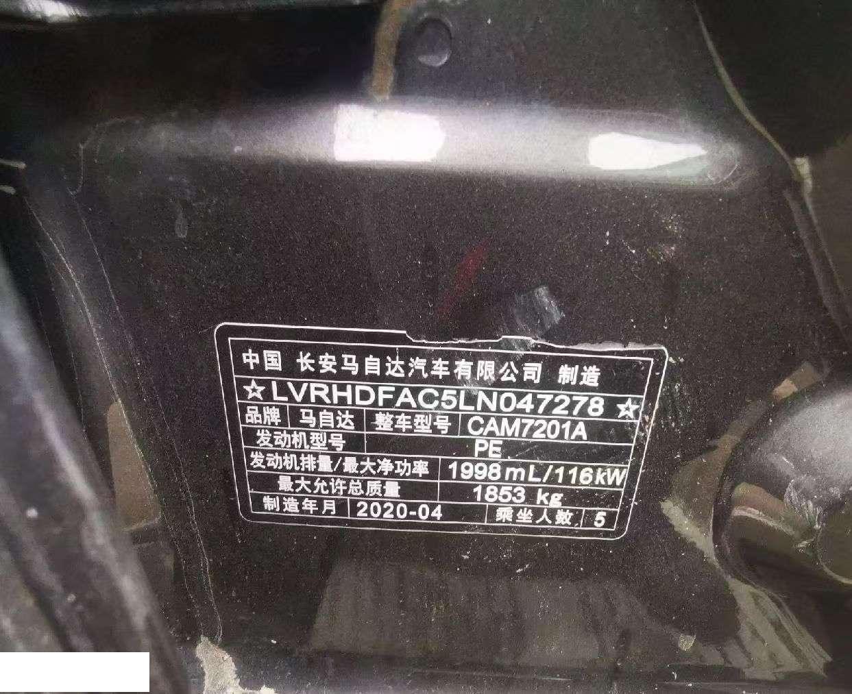 初次登记日期 2020-07-07 车辆名称 马自达3 昂克赛拉