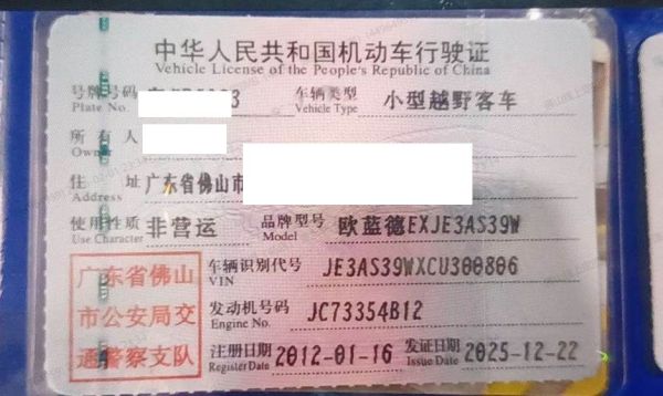 车辆归属地 广东省佛山市 车辆停放仓库 广东省佛山市佛山市