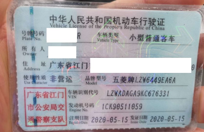 初次登记日期 2020-05-15 车辆名称 五菱汽车 五菱宏光S
