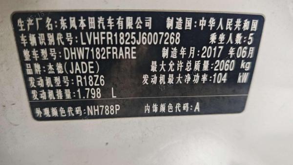 初次登记日期 2017-09-05 车辆名称 本田 杰德