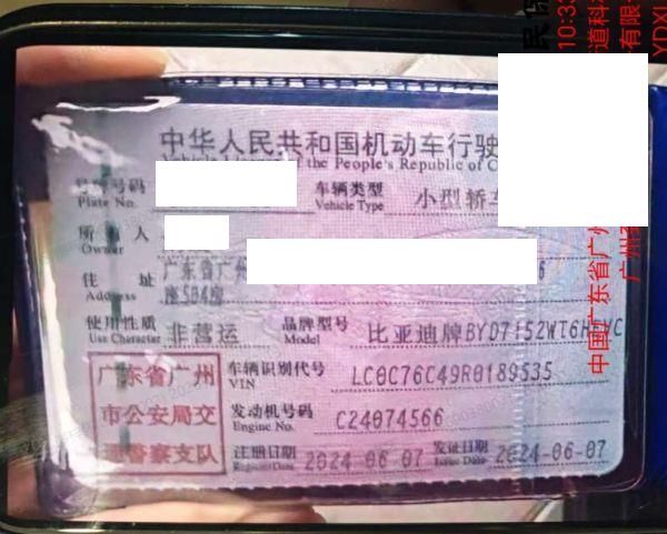 车牌号 粤****** 品牌 比亚迪