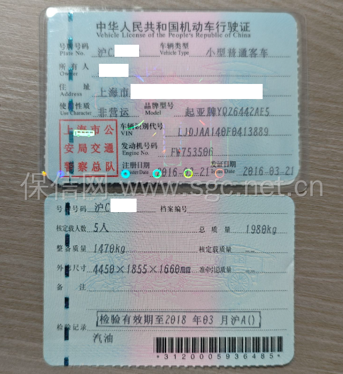 车牌号 沪****** 品牌 起亚