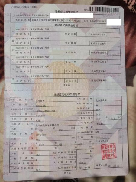初次登记日期 2017-10-10 车辆名称 现代 悦纳