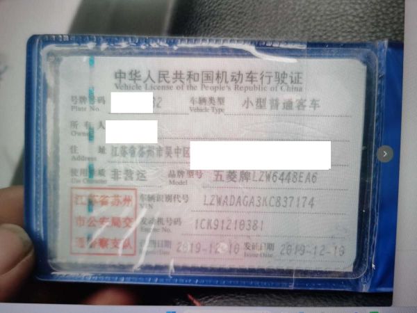 初次登记日期 2019-12-10 车辆名称 五菱汽车 五菱宏光V