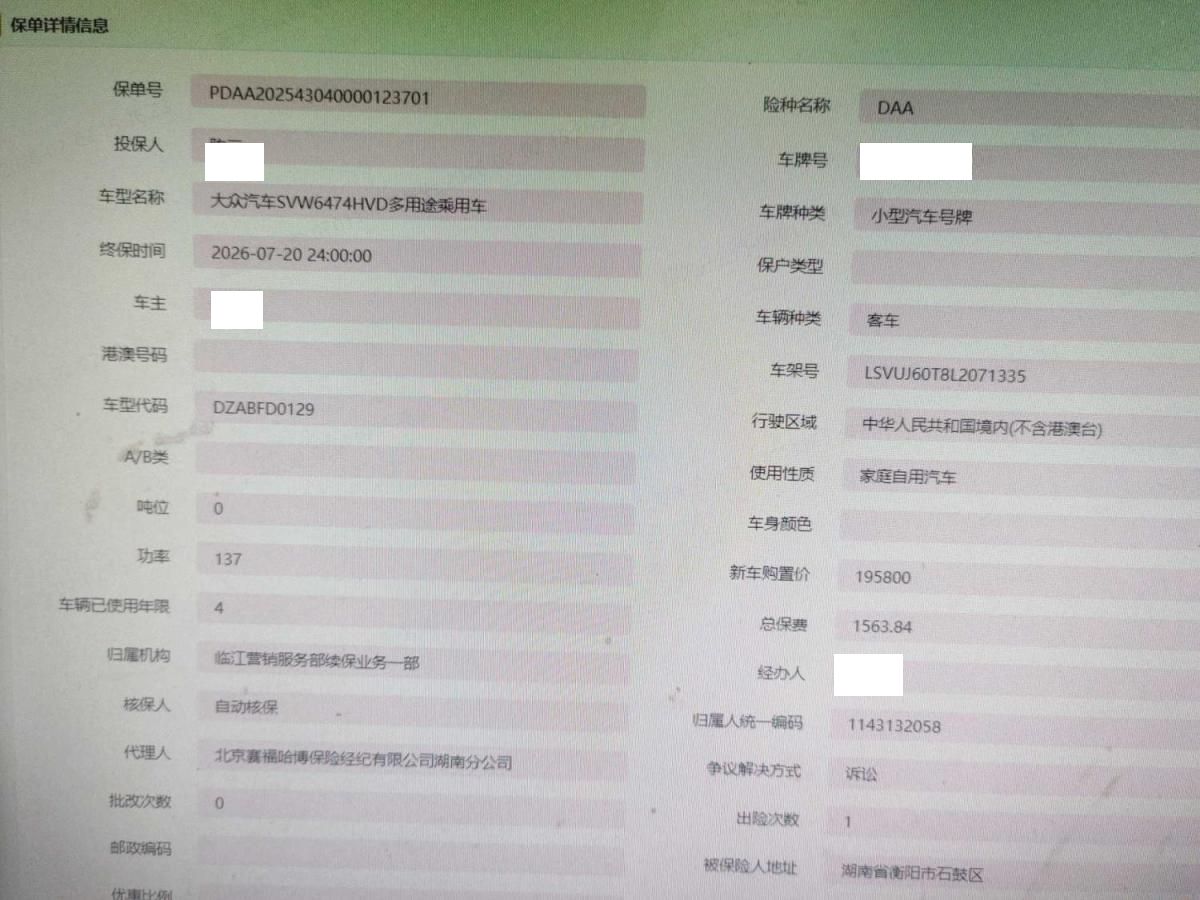 车牌号 湘****** 品牌 大众