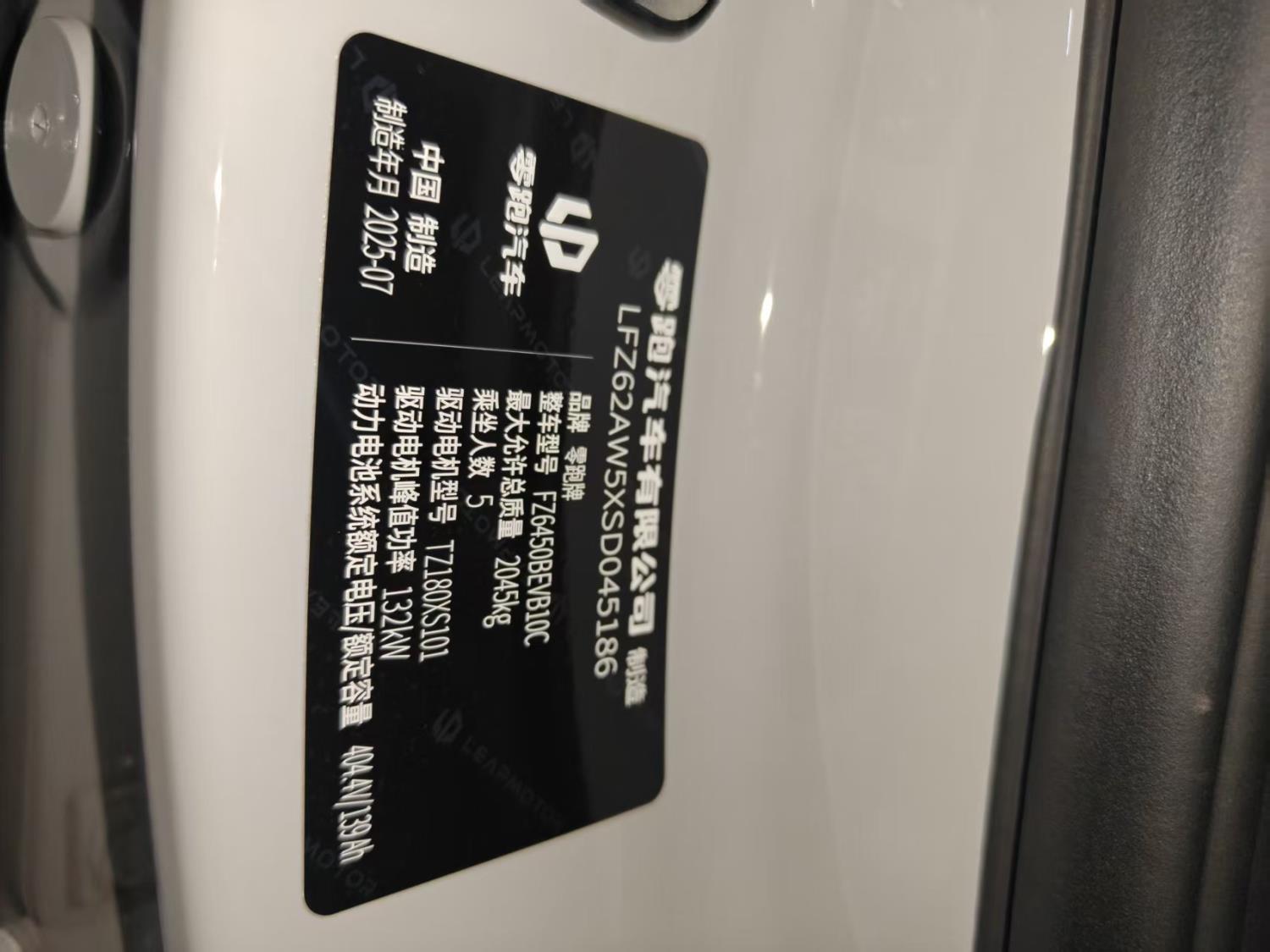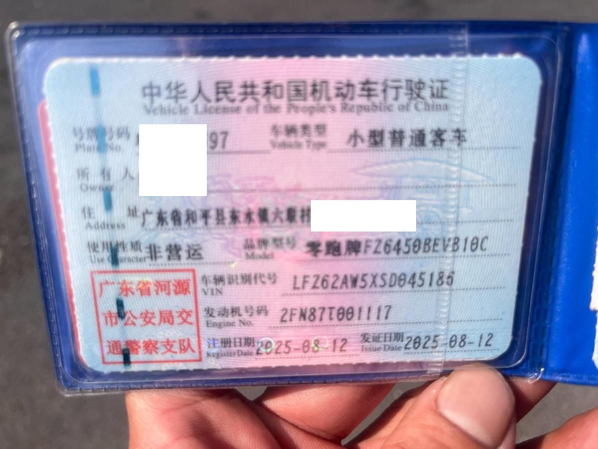 初次登记日期 2025-08-12 车辆名称 零跑汽车