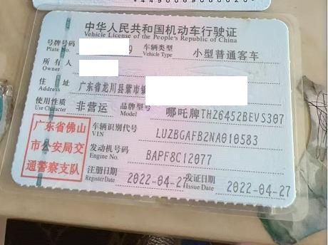 车辆归属地 广东省佛山市 车辆停放仓库 广东省中山市中山市