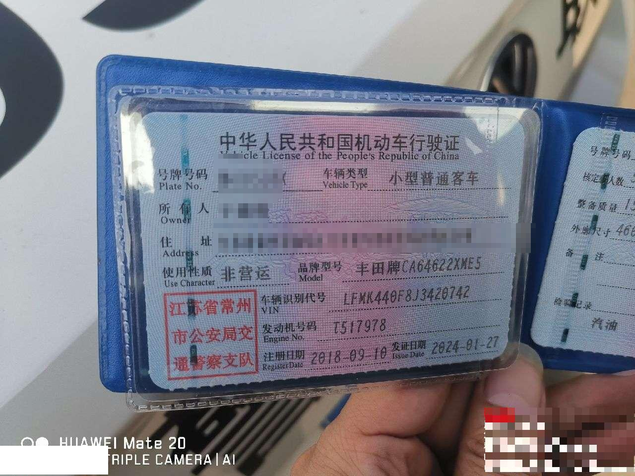 车牌号 苏****** 品牌 丰田