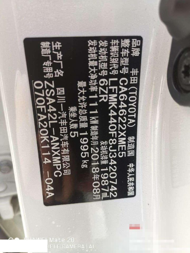 初次登记日期 2018-09-10 车辆名称 丰田 RAV4荣放
