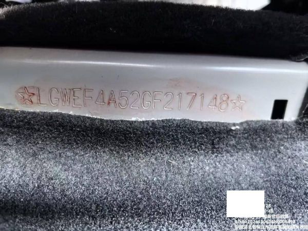 底盘号码 LGWEF4A52GF217148 变速箱类型 手动