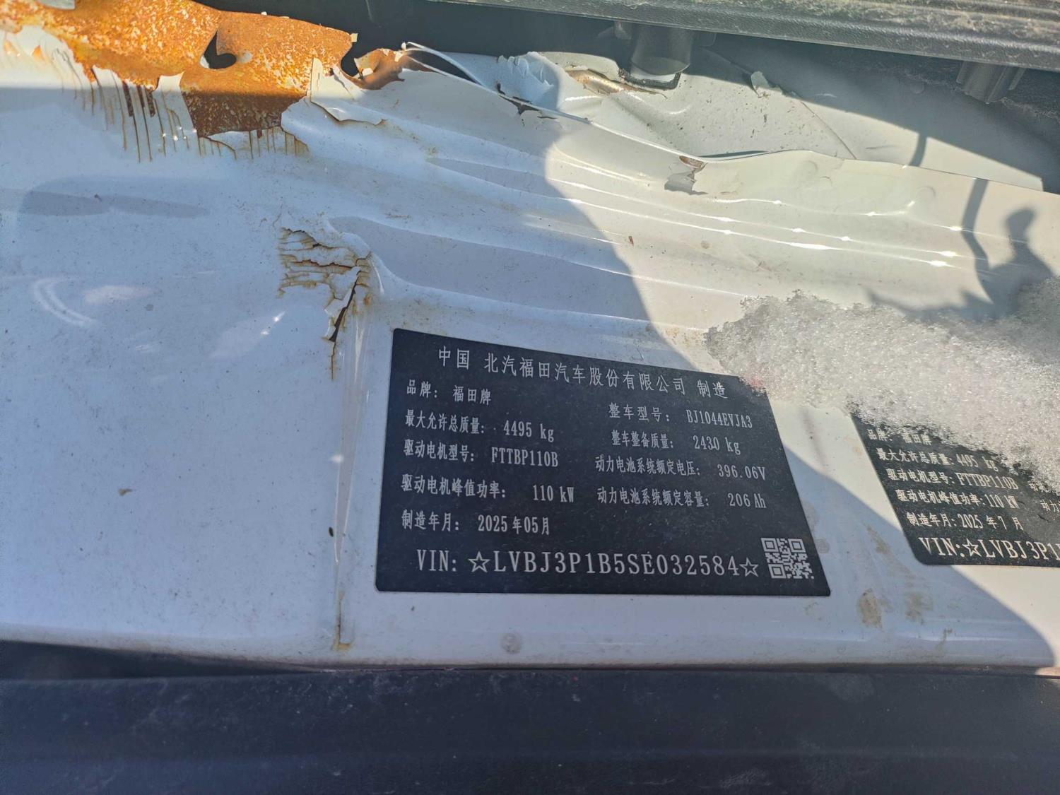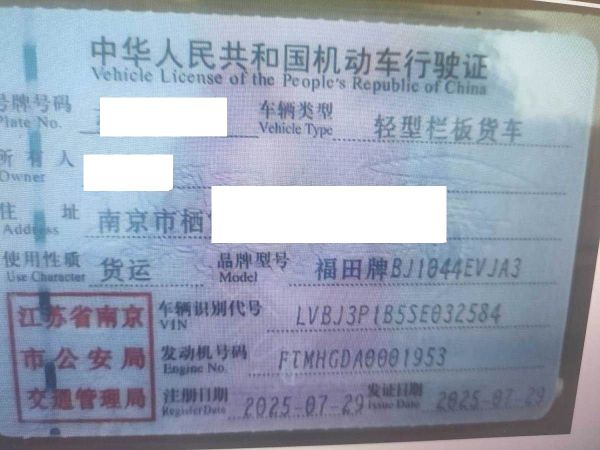 初次登记日期 2025-07-29 车辆名称 福田牌