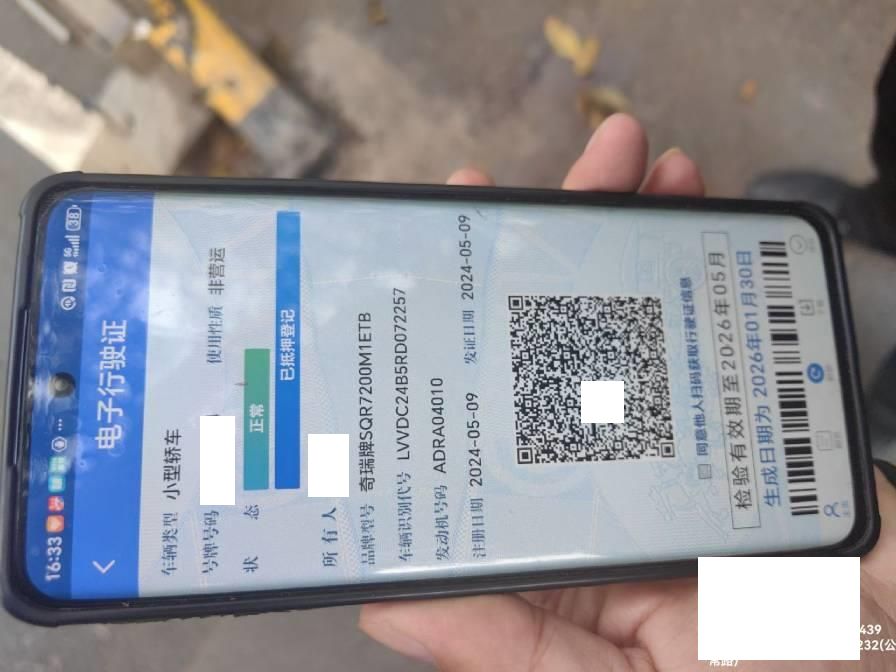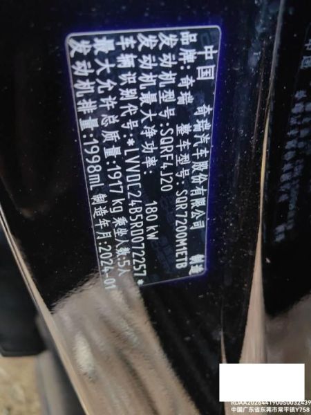初次登记日期 2024-05-09 车辆名称 奇瑞 艾瑞泽8