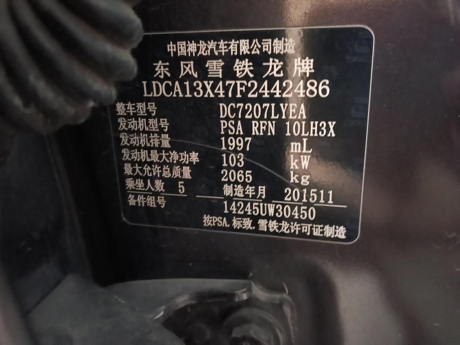 初次登记日期 2016-01-08 车辆名称 雪铁龙C5