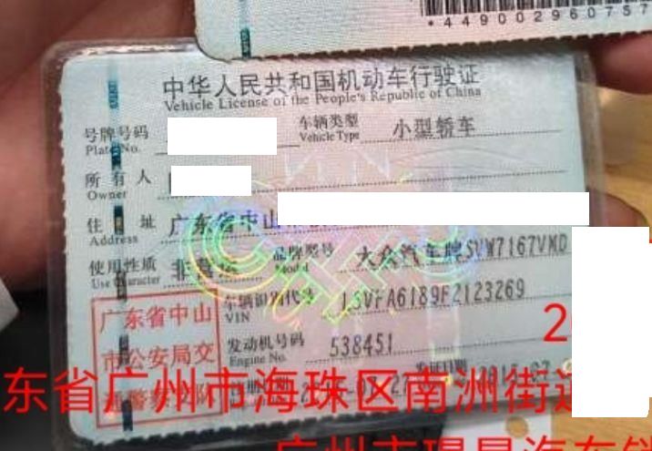 车辆归属地 广东省中山市 车辆停放仓库 广东省广州市广州市