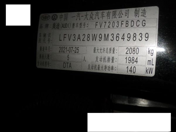初次登记日期 2021-08-09 车辆名称 奥迪A4L