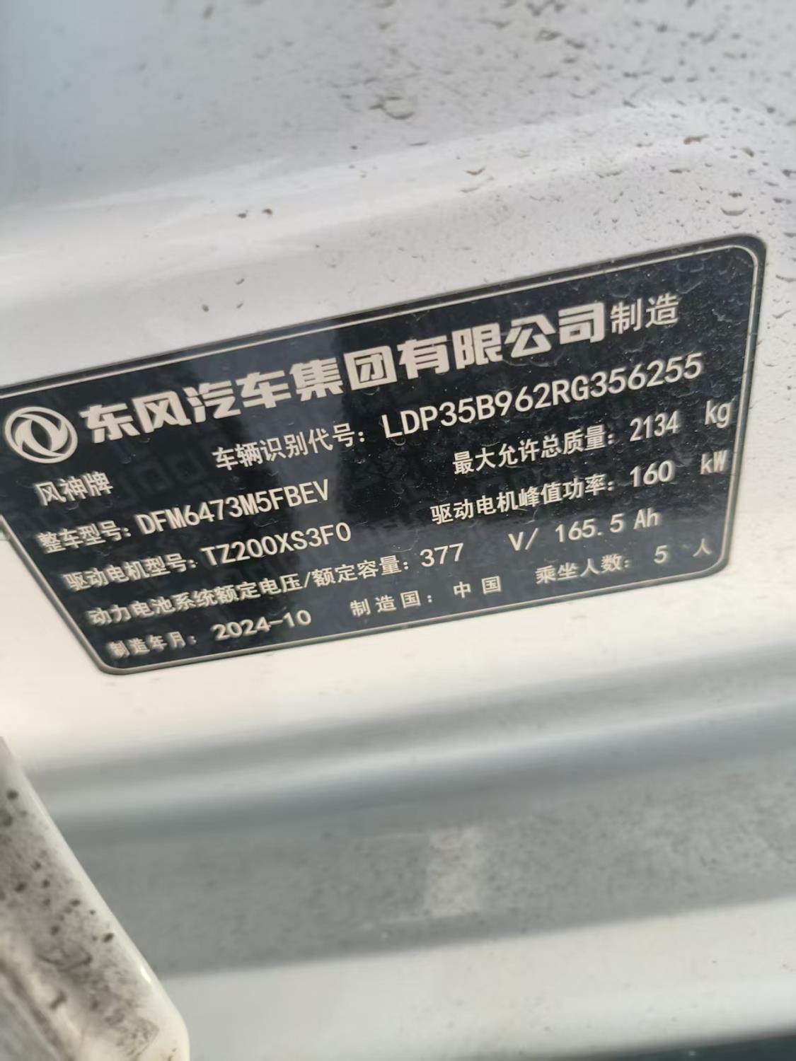 初次登记日期 2024-12-31 车辆名称 东风风神