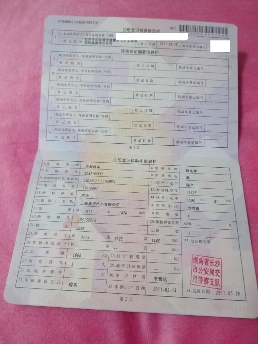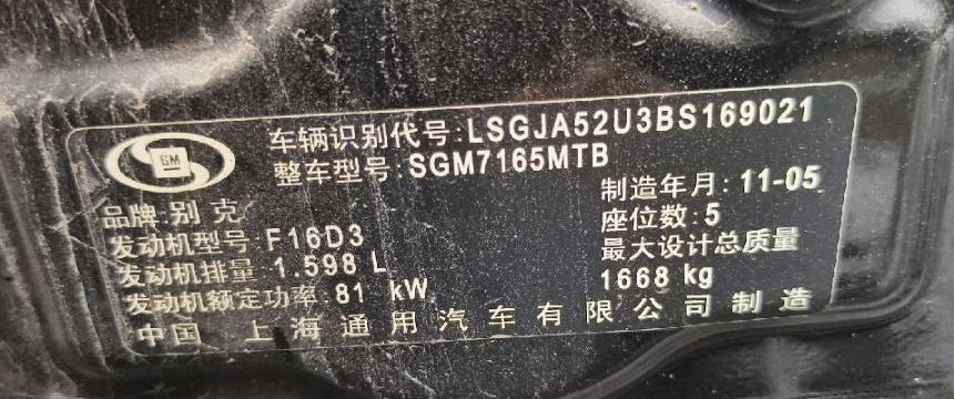 初次登记日期 2011-05-30 车辆名称 别克 凯越