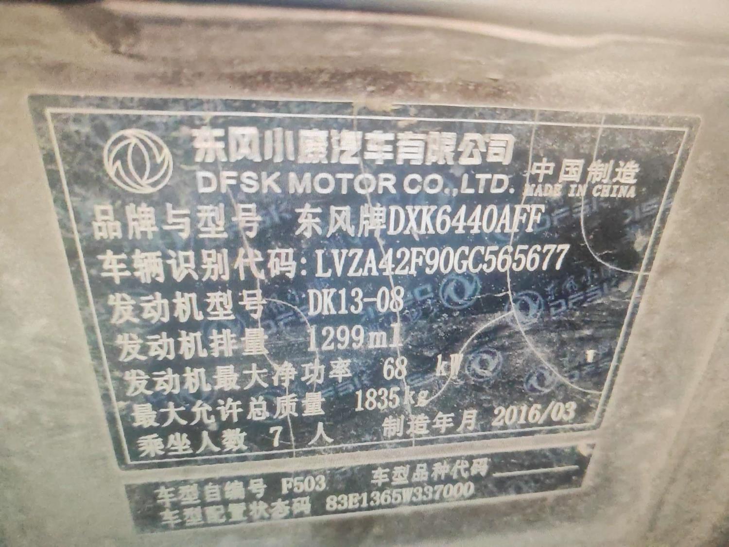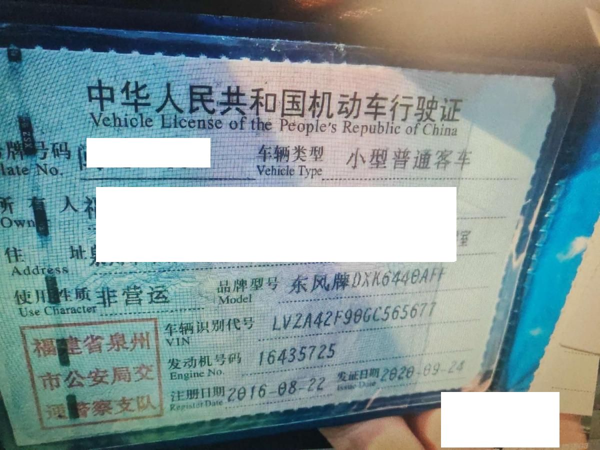 初次登记日期 2016-08-22 车辆名称 东风风光
