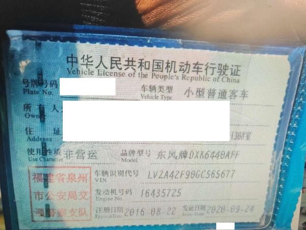 车辆归属地 福建省泉州市 车辆停放仓库 福建省泉州市泉州市