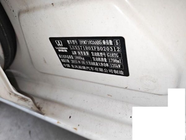 底盘号码 LUXS71H0XFB020312 变速箱类型 手自一体