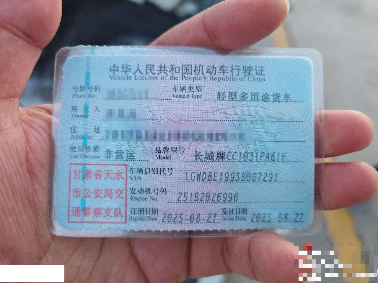 初次登记日期 2025-08-27 车辆名称 长城 风骏5
