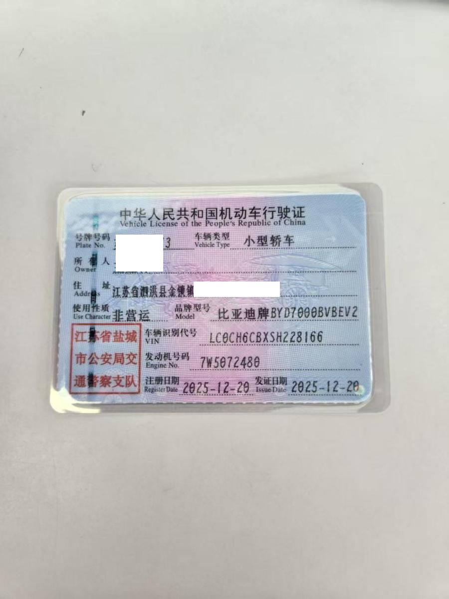 初次登记日期 2025-12-20 车辆名称 比亚迪