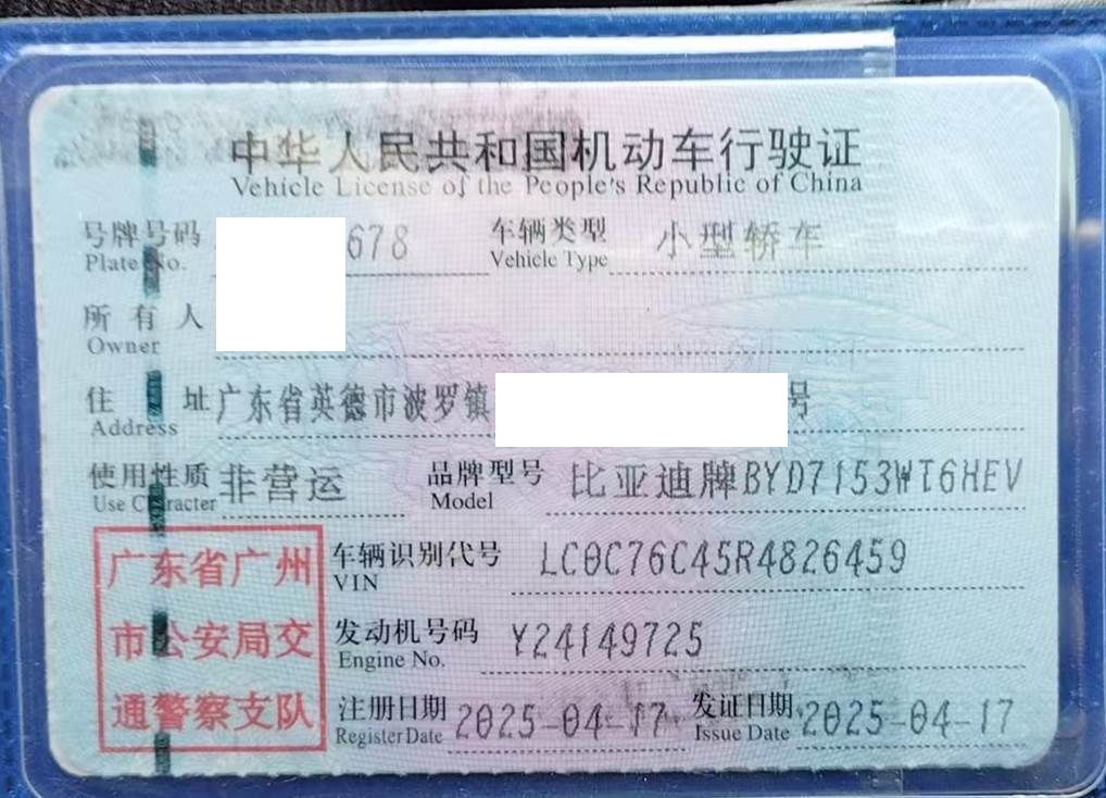 车牌号 粤****** 品牌 比亚迪