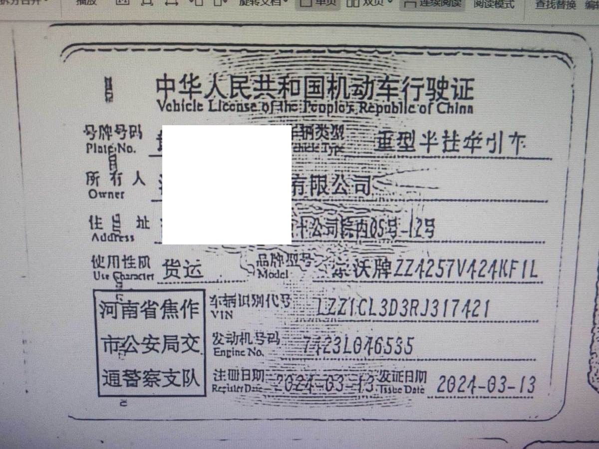 车辆归属地 河南省焦作市 车辆停放仓库 河南省郑州市郑州市