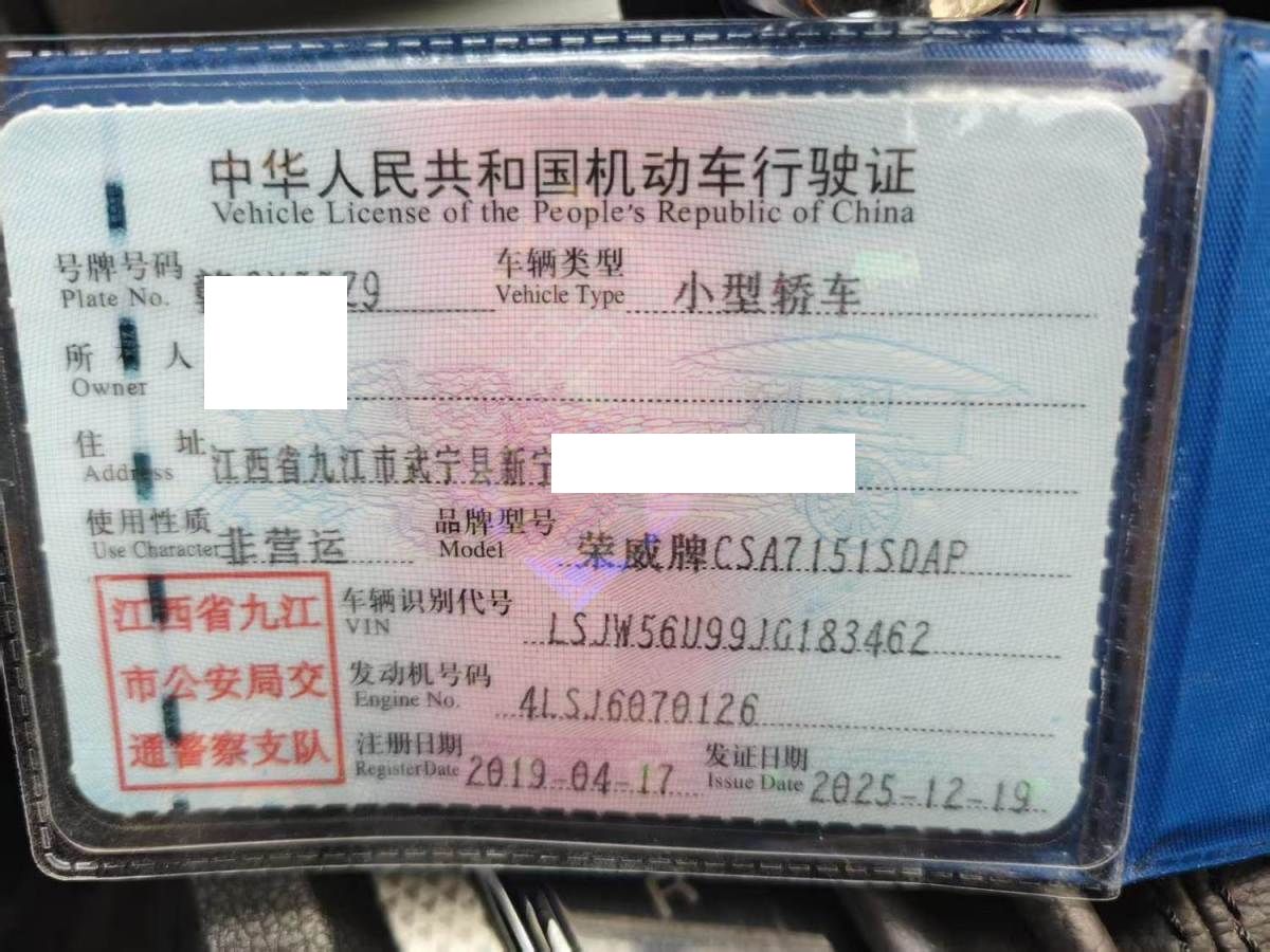 初次登记日期 2019-04-17 车辆名称 荣威i6经典