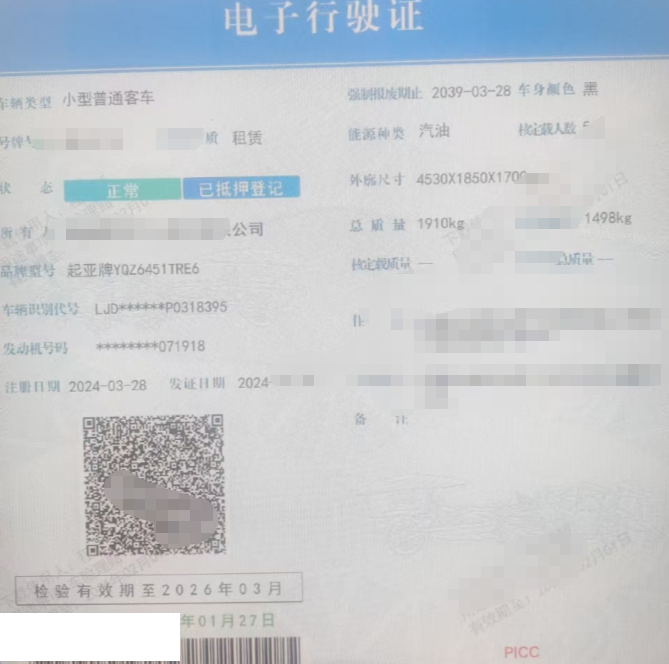 车架号是否受损 未知 使用性质 租赁