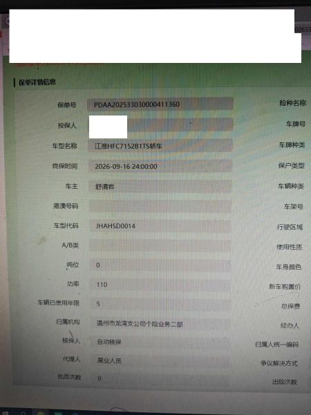 车牌号 浙****** 品牌 江淮