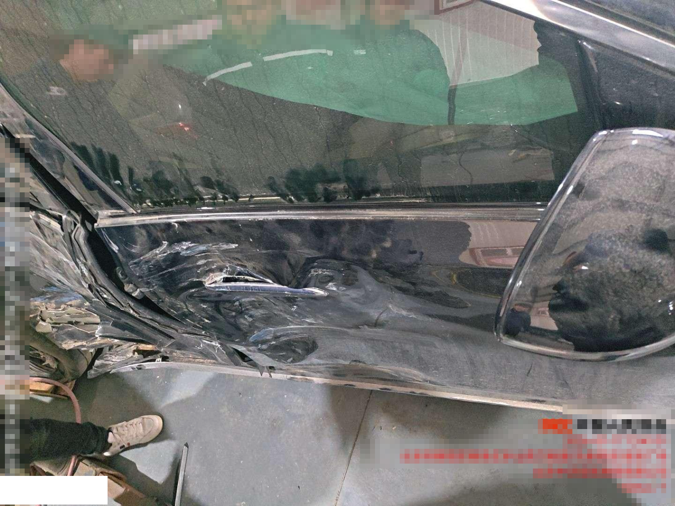 根据所给照片,自行判断钢印号是否受损 三者奔驰,受损严重,抵押车,无法整车全损,左侧围有切割,没走保险