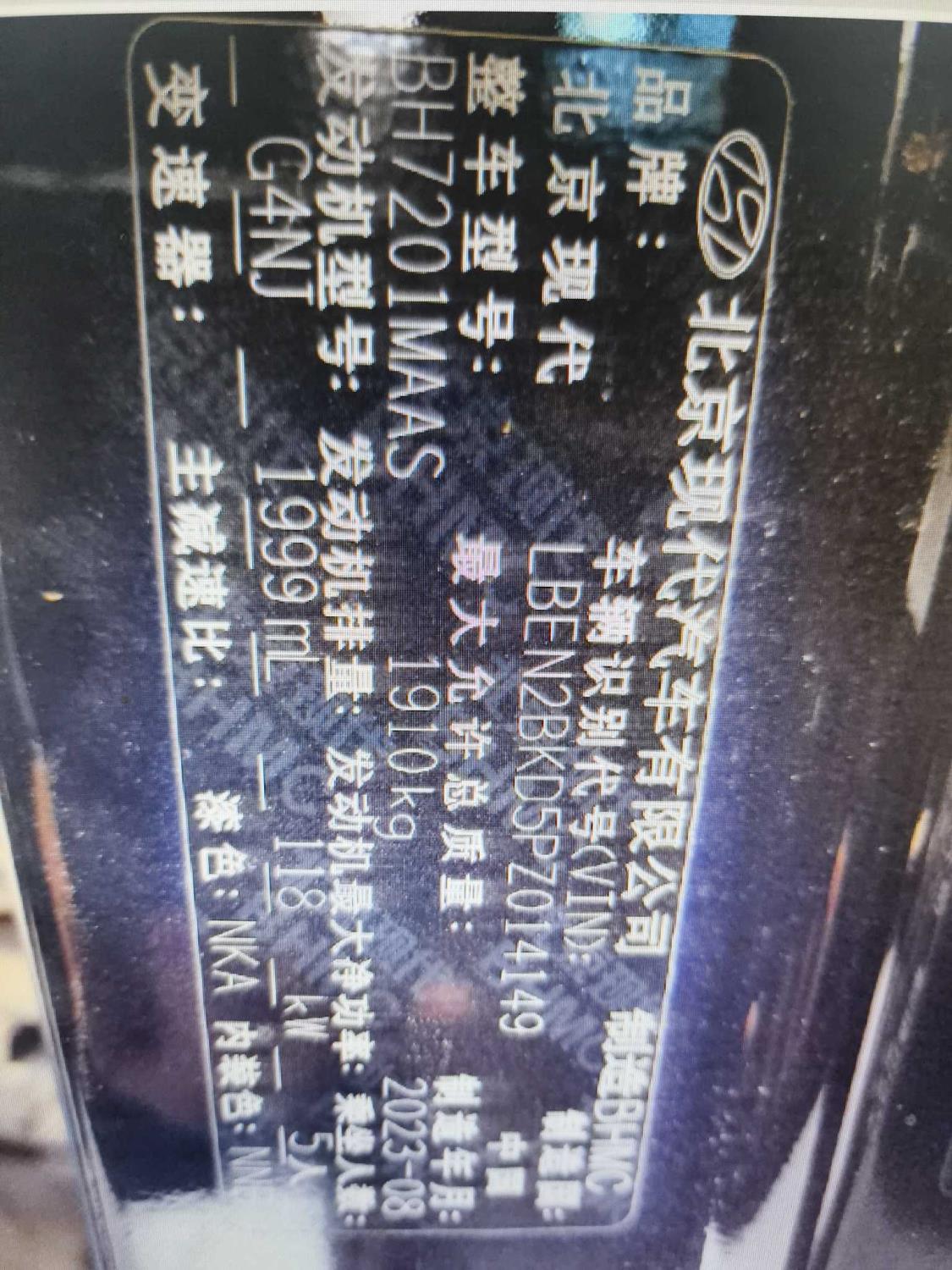 底盘号码 LBEN2BKD5PZ014149 变速箱类型 自动