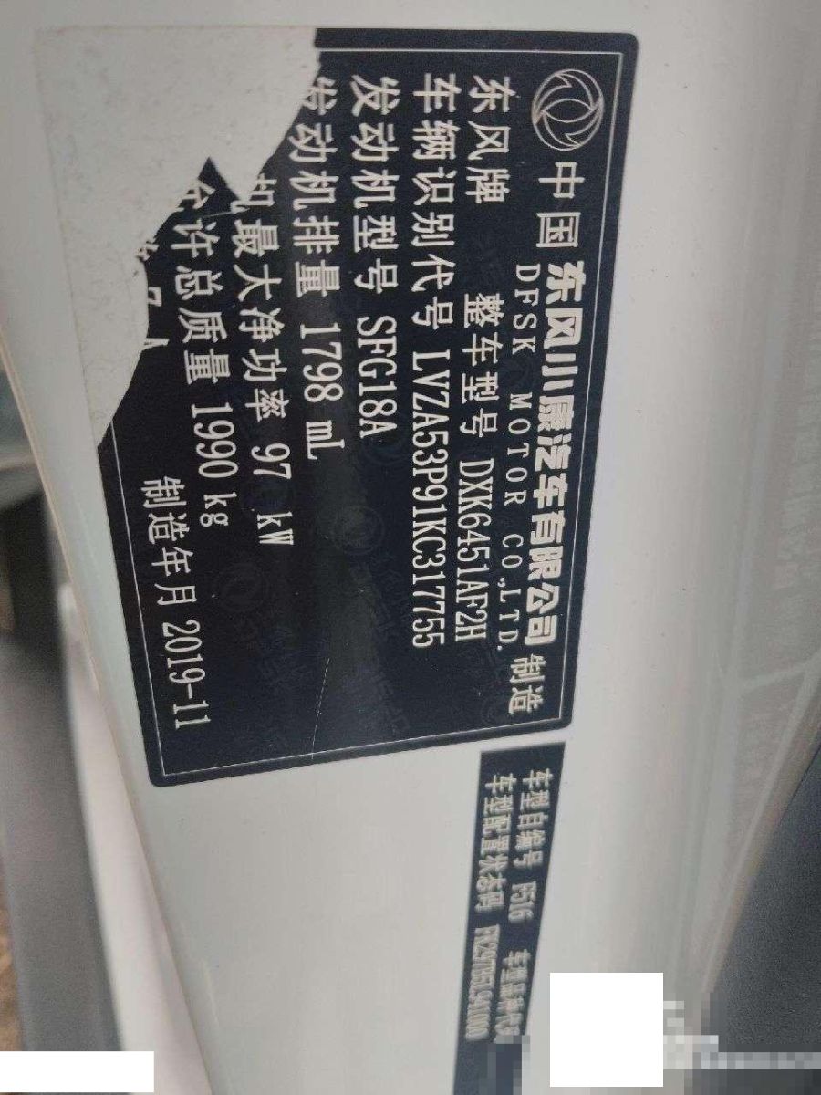 底盘号码 LVZA53P91KC317755 变速箱类型 手动