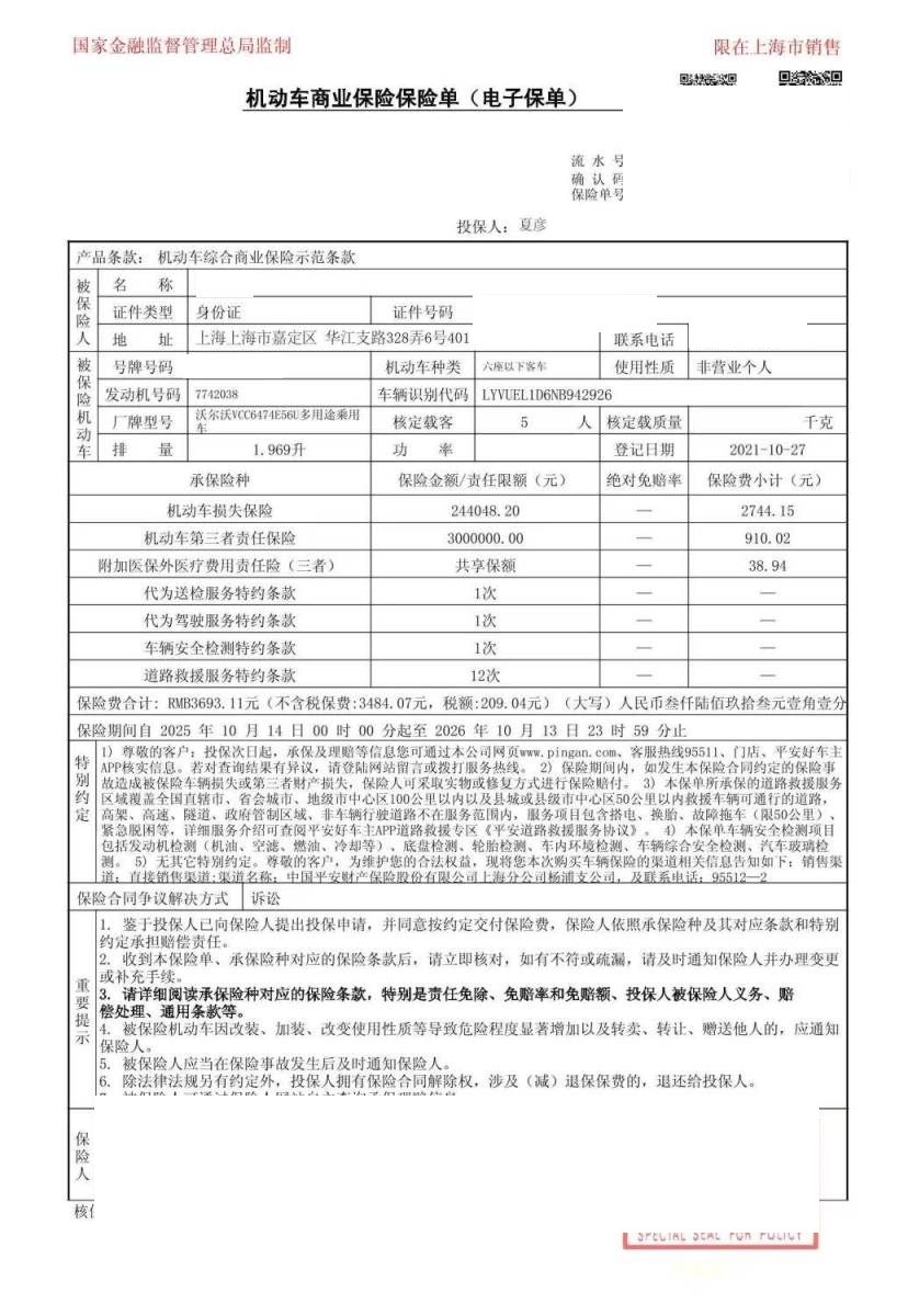 车牌号 沪****** 品牌 沃尔沃