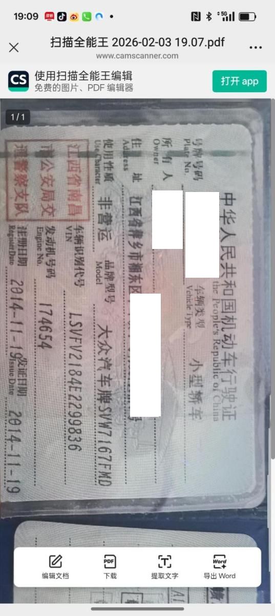 车牌号 赣****** 品牌 大众
