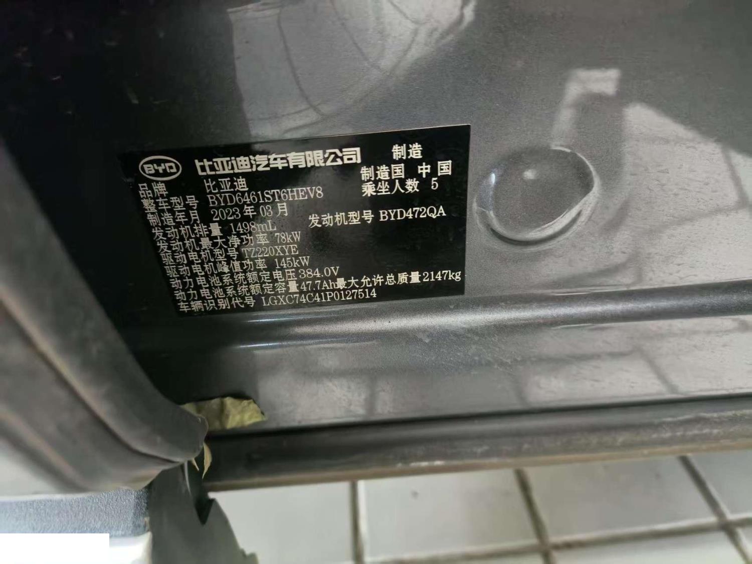 初次登记日期 2023-03-21 车辆名称 比亚迪 宋