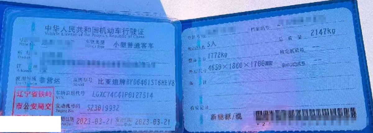 车牌号 辽****** 品牌 比亚迪