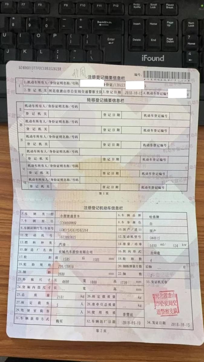 初次登记日期 2018-10-15 车辆名称 哈弗牌