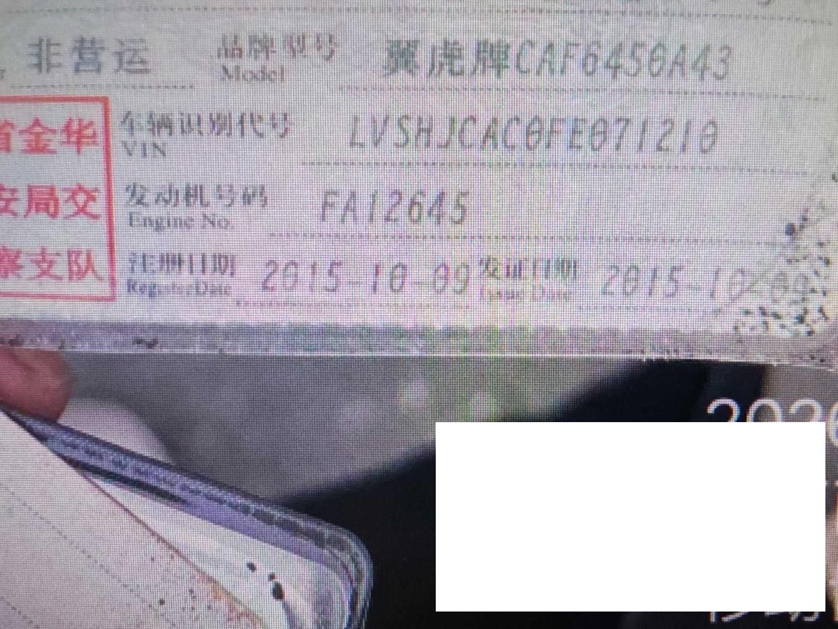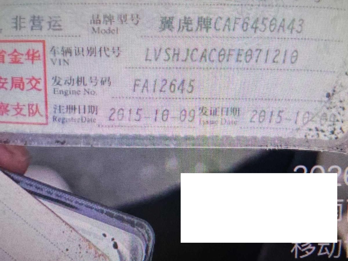 底盘号码 LVSHJCAC0FE071210 变速箱类型 手自一体