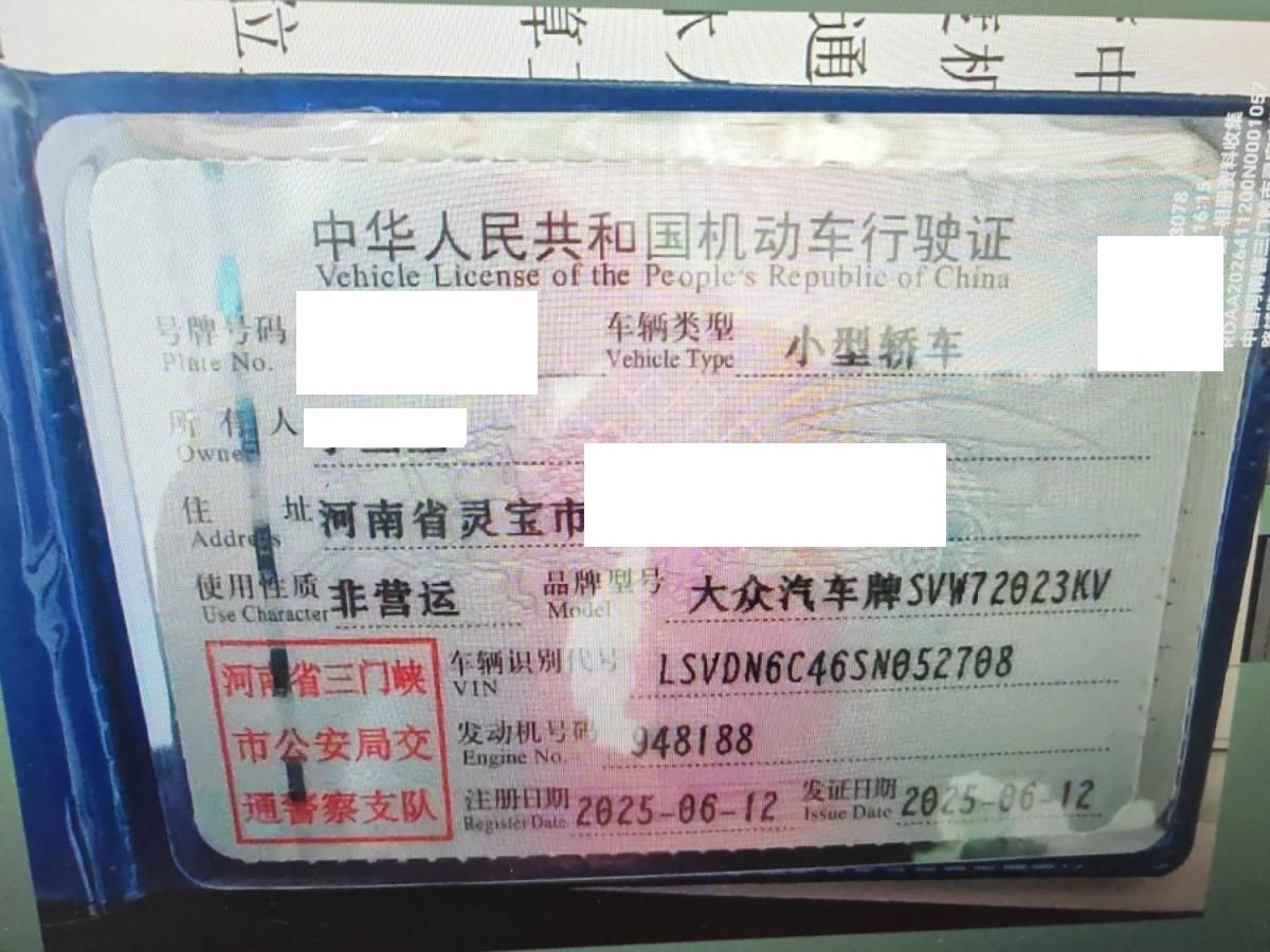 初次登记日期 2025-06-12 车辆名称 大众 帕萨特