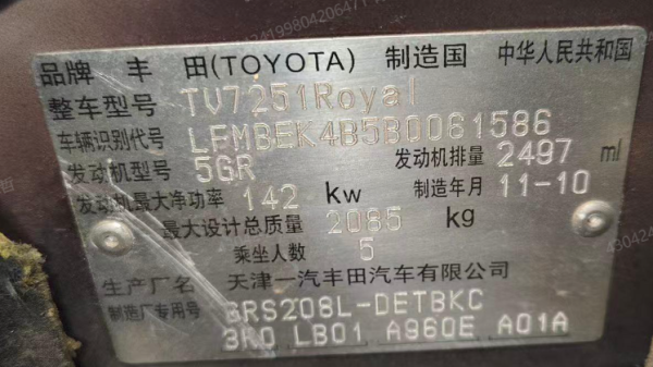 初次登记日期 2011-11-18 车辆名称 丰田 皇冠