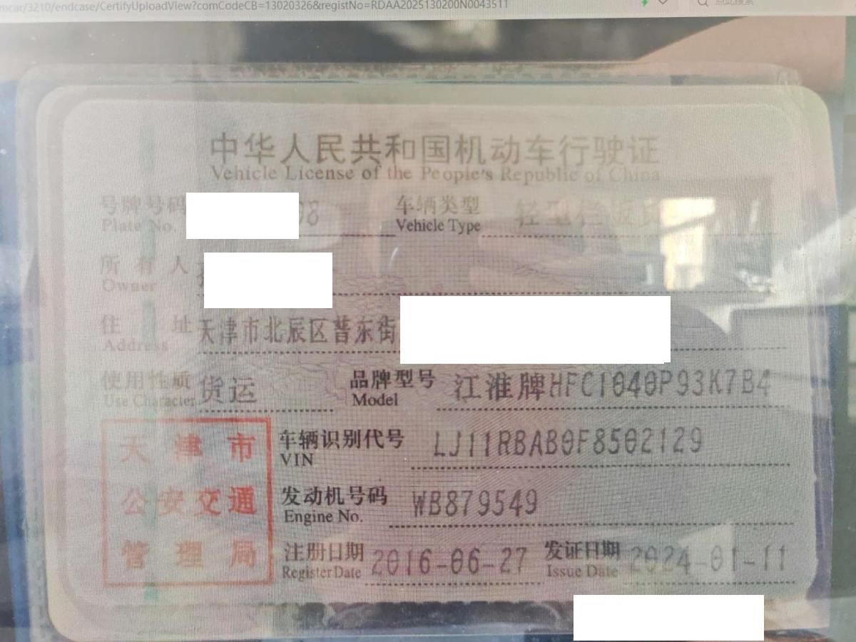 车牌号 津****** 品牌 江淮