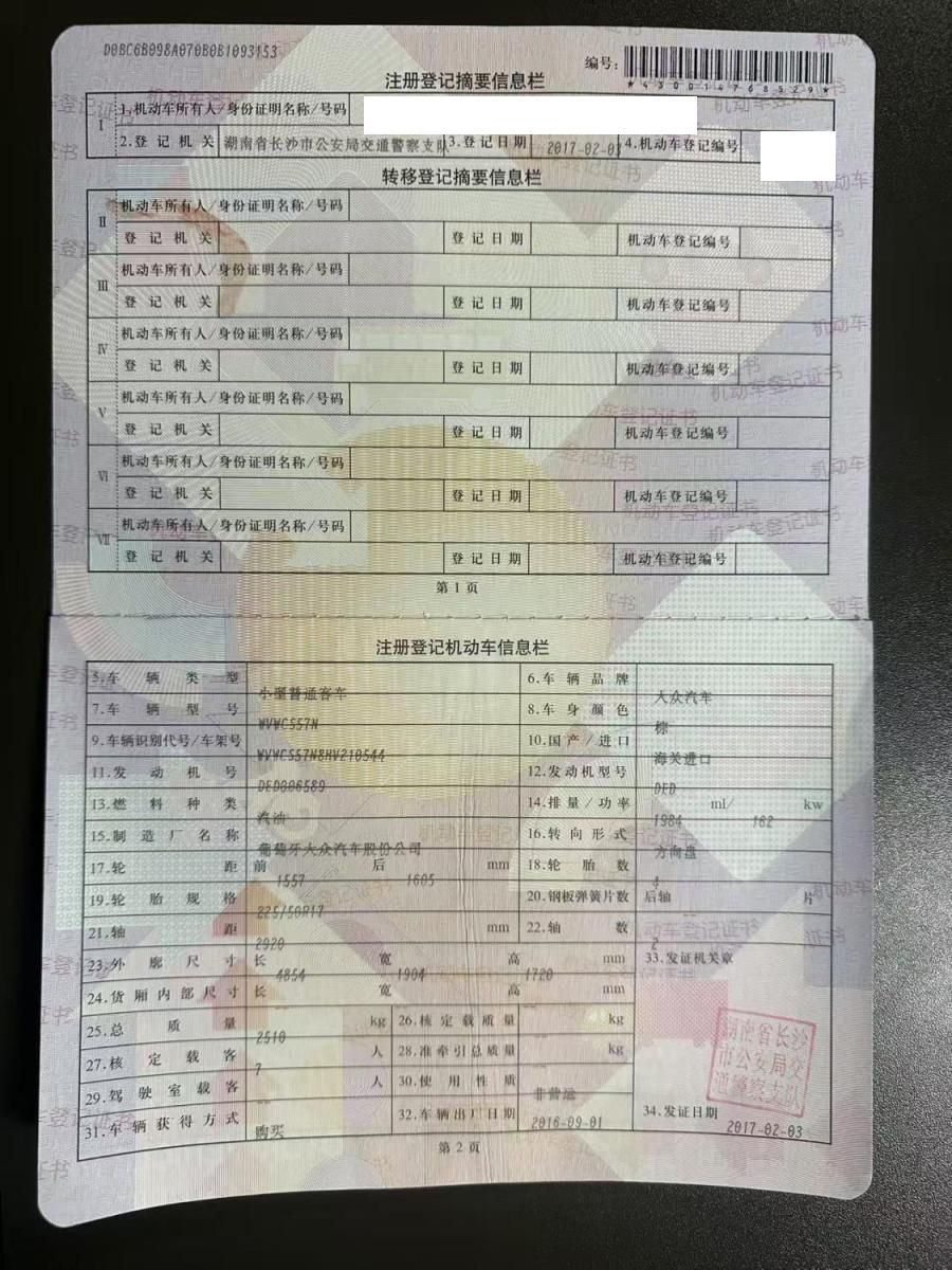 初次登记日期 2017-02-03 车辆名称 大众 夏朗
