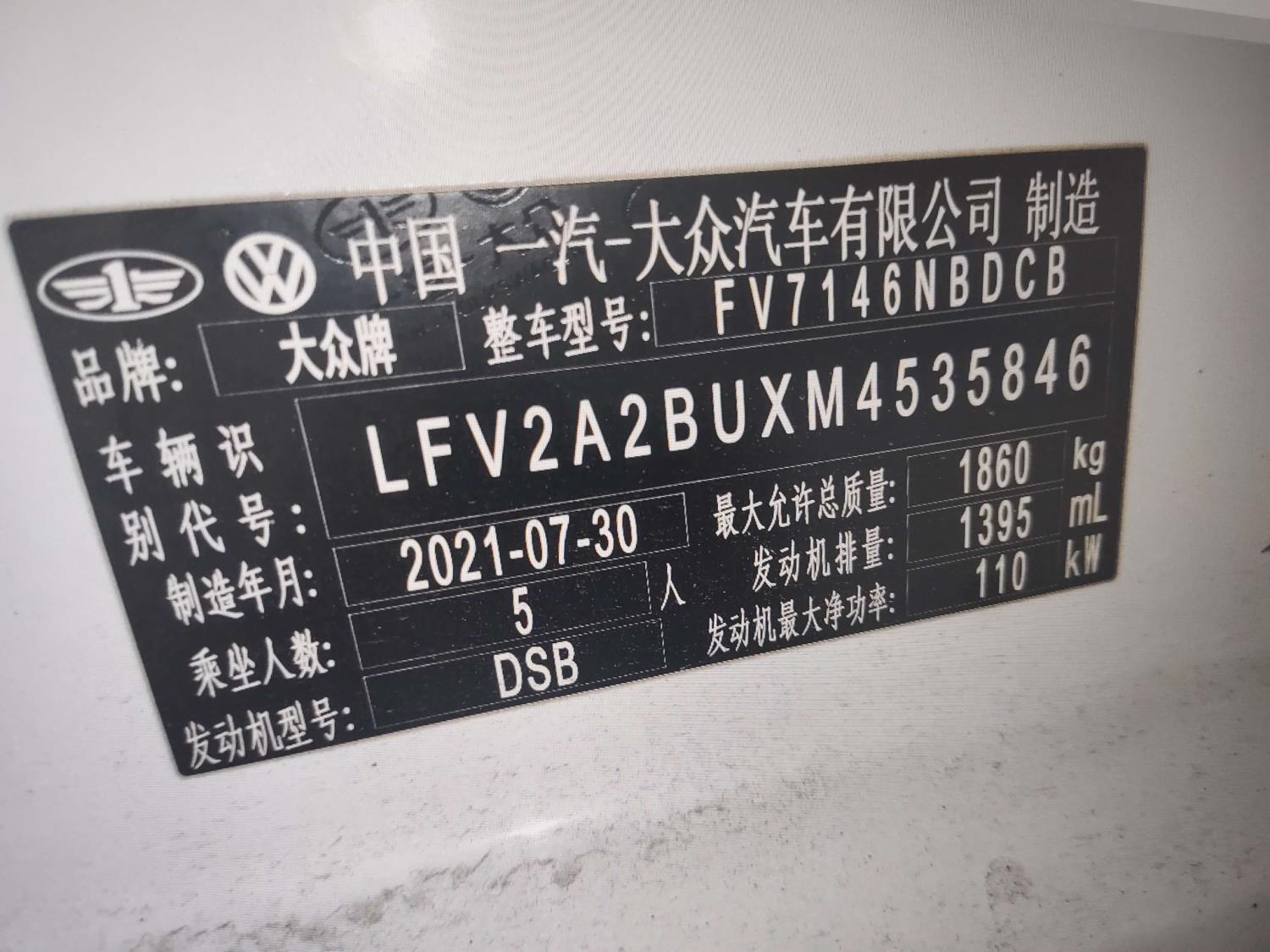 初次登记日期 2021-09-09 车辆名称 大众 速腾