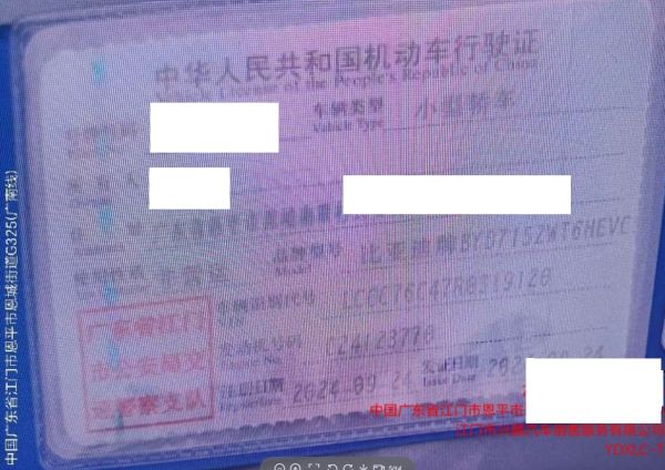 车辆归属地 广东省江门市 车辆停放仓库 广东省恩平市恩平市