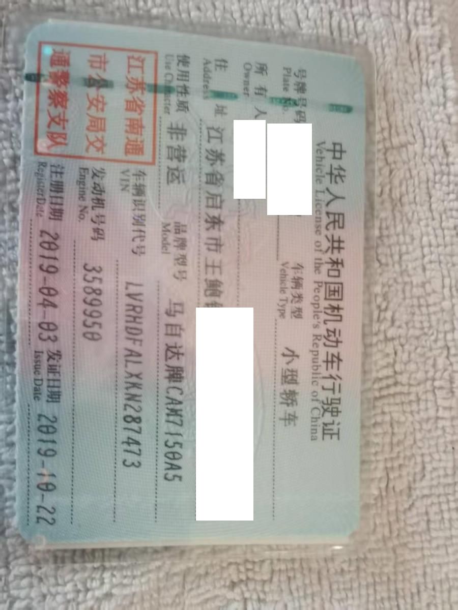 车辆归属地 江苏省南通市 车辆停放仓库 上海市浦东区浦东区