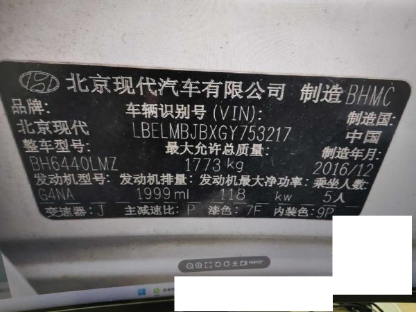 初次登记日期 2016-12-20 车辆名称 北京现代ix35