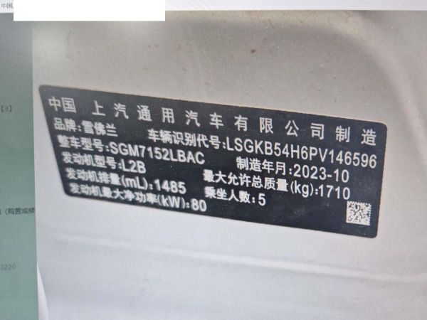 初次登记日期 2023-10-19 车辆名称 雪佛兰 科鲁泽